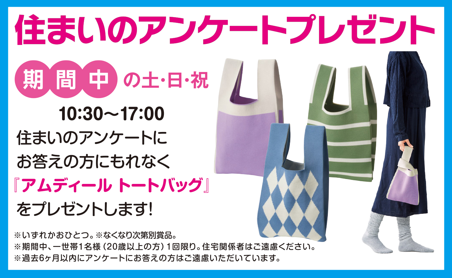 住まいのアンケートにお答えの方にもれなく「アムディール トートバッグ」をプレゼント!