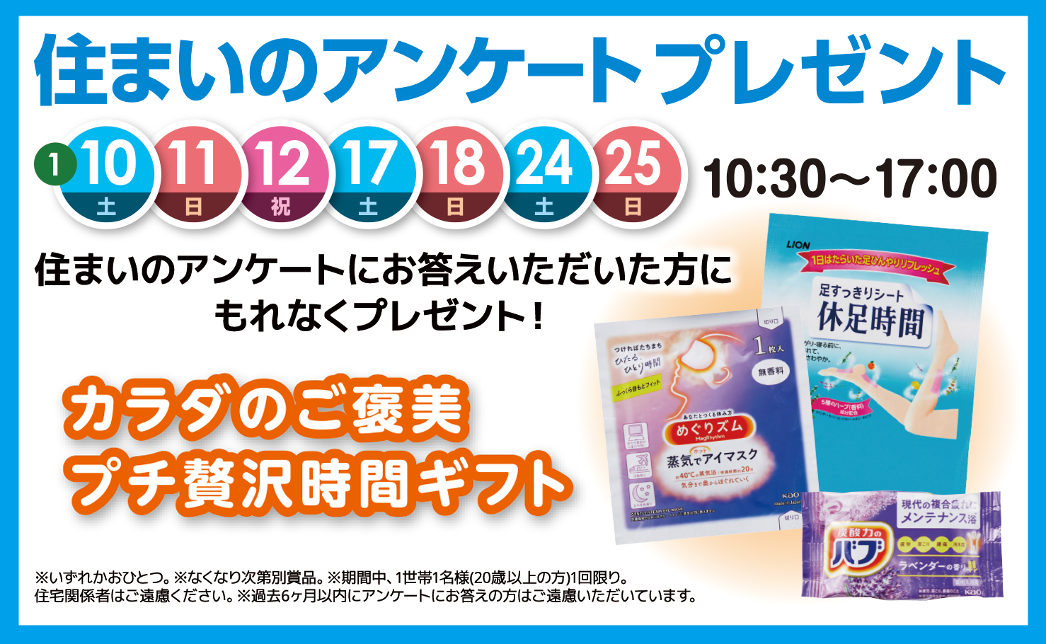 ※期間中、1世帯1名様(20歳以上の方)1回限り。住宅関係者はご遠慮ください。
