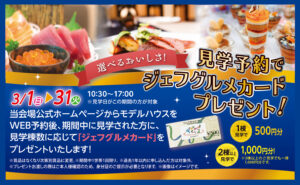 【2026年3月1日(日)〜31日(火)】選べるおいしさ!見学予約でジェフグルメカードプレゼント!
