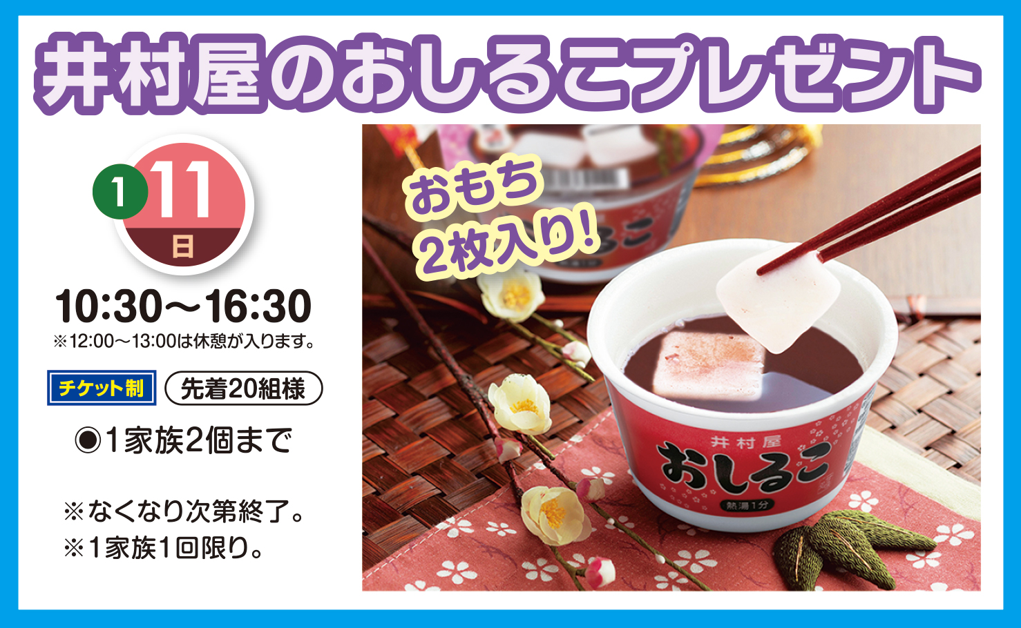 【2026年1月11日(日)】井村屋のおしるこプレゼント